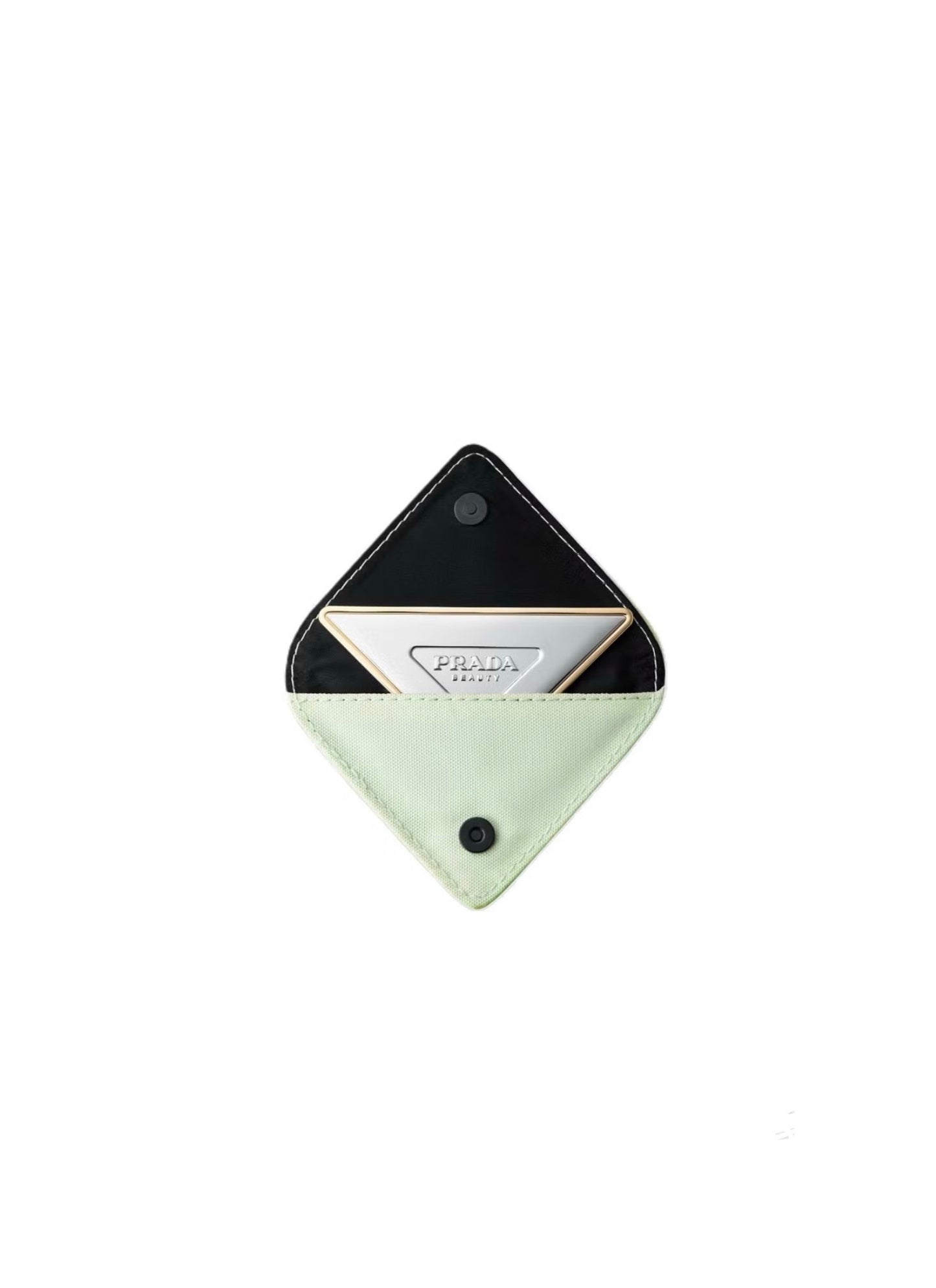 სუპერ სტილური კომპაქტური სარკე PRADA-სგან — ბრენდის ცნობილი სამკუთხა ფორმით, მწვანე ფერში